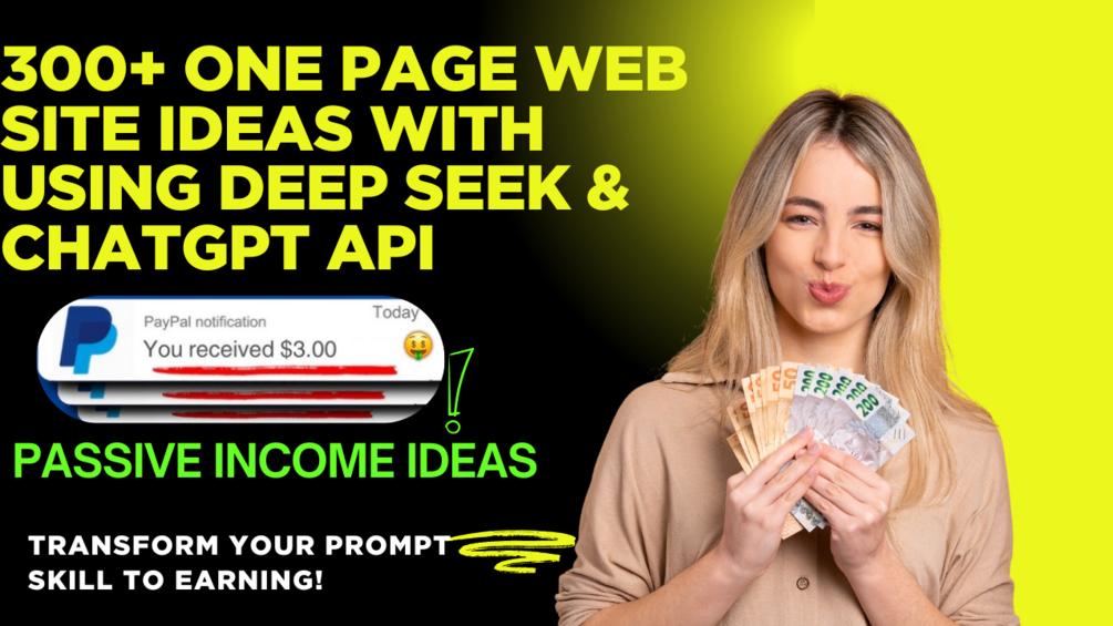 300+ ideas make one page website using deepseek & chatGPT APIs with description, simple prompts, estimated earning, multiple categories to start with.